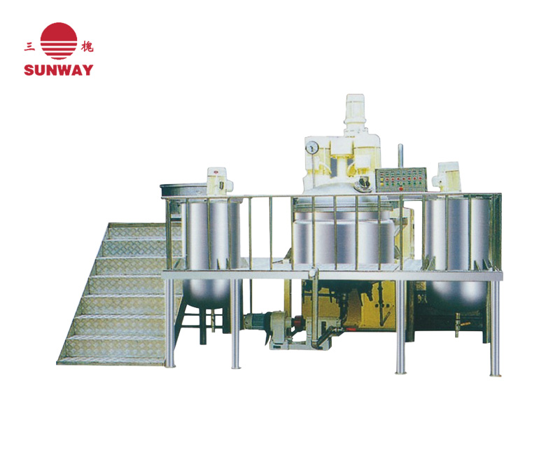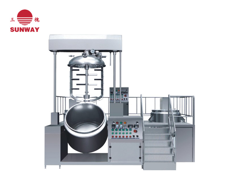 适用物料的加热。溶解、均质乳化,真空脱气。是洗面奶、药资化放品等中乳剂膏器类产品生产制造的机器设备。一整套机器设备配有油相锅、水相锅、乳化锅、操控平台、控制柜。
