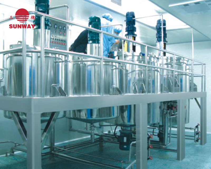 香波生产线一般 由香波锅、配料锅、计量桶、操作平台、控制柜以及相关的过滤器、管道、阀门组成。